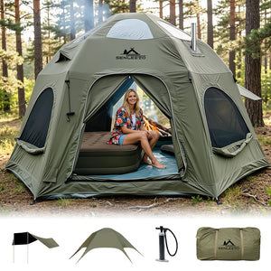 Senleeto™ Grand Air Cabin: 8-10 Person Inflatable Glamping Tent with Stove Jack (4-Season)