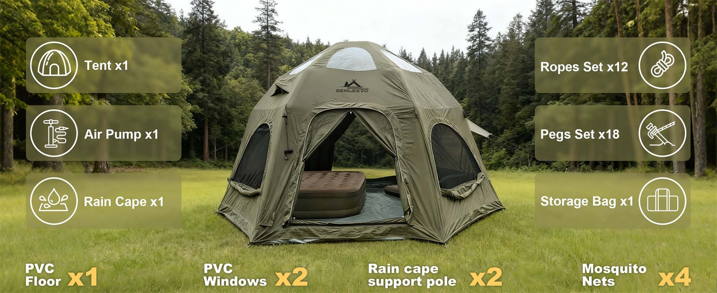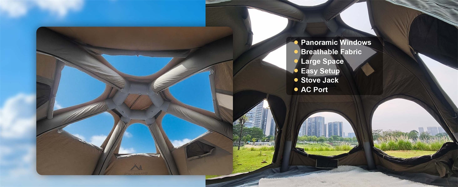 • Stable Dome Design: The unique six-arch airbeam structure provides robust, 360° support, ensuring stability even in strong winds.
